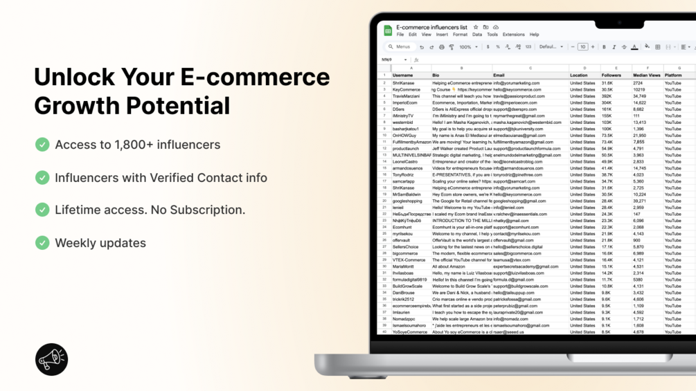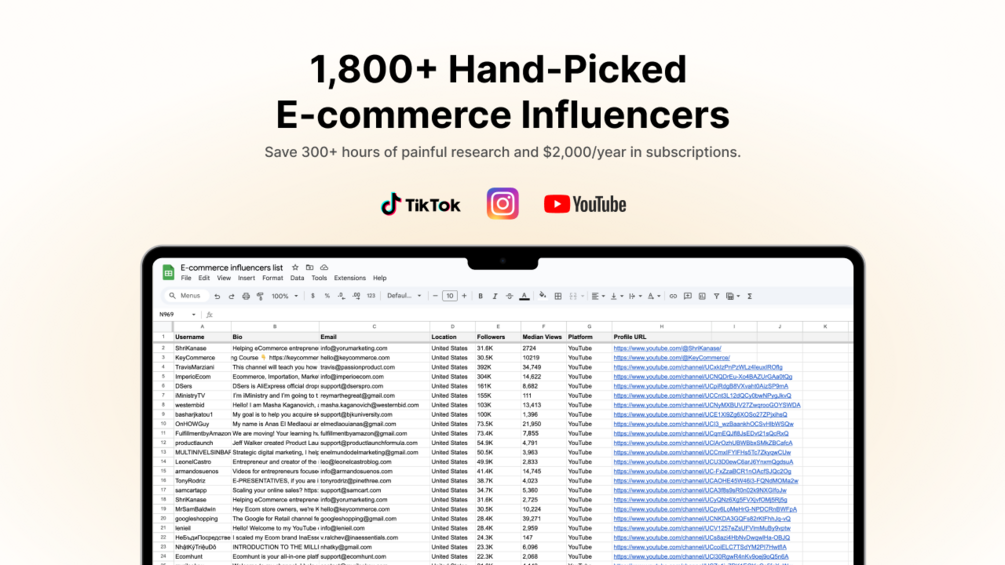 1,800+ Hand-Picked E-commerce Influencers To Make Your Store Go Viral.